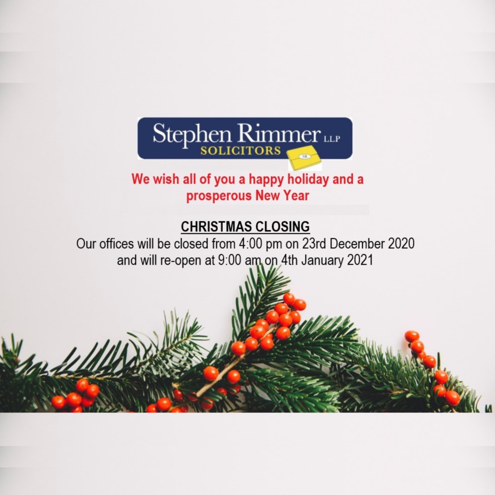 Our offices will be closed from 4:00pm on Wednesday 23rd December 2020 and will re-open at 9:00am on Monday 4th January 2021.